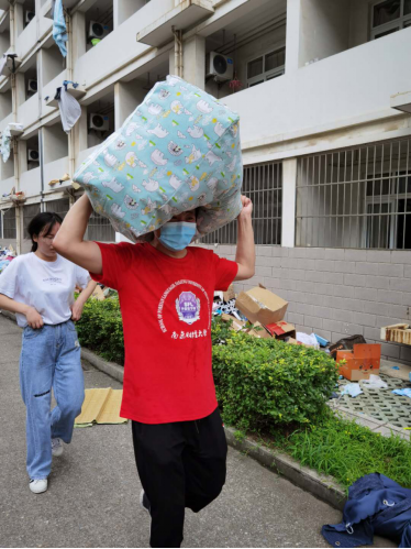 7月3日是毕业生离校的日子,肉视频 共建党支部——国际合作与交流处党支部、教工党支部以及青年教师来到宿舍,看望毕业生,帮助离校毕业生打包和搬运行李,用实际行动给毕业生上了一堂生动的“劳动教育”课。