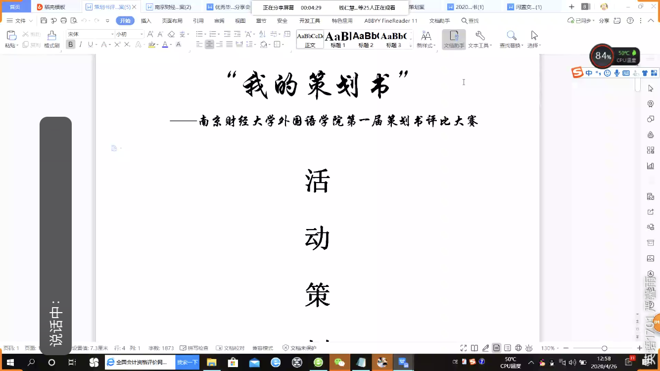 4月26日,学院召开宣传工作线上研讨会,围绕学院近期开展的和即将开展的宣传活动策划展开讨论,旨在通过头脑风暴的方式,碰撞出思想的火花,激发创造性思维,发出更响亮的外院声音。会上,李骏书记强调了“用最少的时间,做最多的主题,覆盖最多的人,取得最棒的效果”的新闻宣传原则,希望大家能充分利用学院在语言能力、时尚化形象、国际化视野等方面的优势,做好宣传工作。