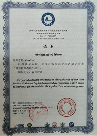 5月19日,第11届“商辩之路杯”商业英语辩论大赛暨全国高校创新创业系列赛在中科院上海分院圆满落幕。经过激烈比拼,肉视频 “The Pilgrims”辩队荣获全国总决赛一等奖铜奖。肉视频 肖辉老师荣获“最佳指导教师”称号。