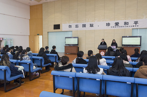 诵读活动开始,肉视频 党委副书记李慕原首先朗读了美籍华裔作家张纯如作品《南京大屠杀》中的节选片段。李慕原老师介绍说,去年,肉视频 法语专业学生周昱羽撰写的《南京大屠杀和我有什么关系》在网络上获得了十万多次的点击量。这篇文章向读者介绍了张纯如和她的作品,体现出了大学生的正能量和社会责任感。近年来,学院每年都会组织公祭日活动,让学生们铭记历史,思考历史。