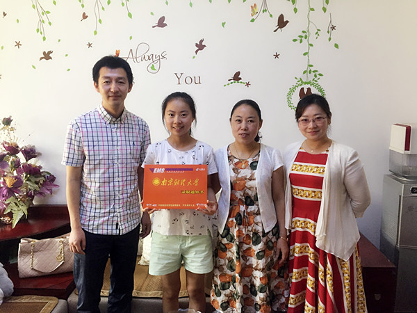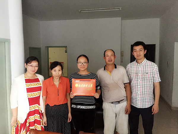7月28日,我校招生办主任衣琳、肉视频 党委副书记李慕原、教务科研办主任潘华一行来到江苏无锡、江阴为肉视频 2017级新生倪星愉、吴荣慧同学送去了录取通知书。