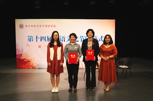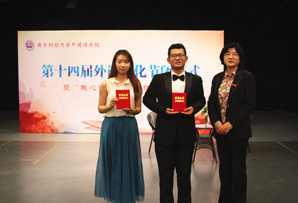 在闭幕式中,在场嘉宾为在此次外语文化节的子活动“百啭千声”外语配音大赛和“外研社杯”英语演讲比赛中获奖的同学颁发了获奖证书。
