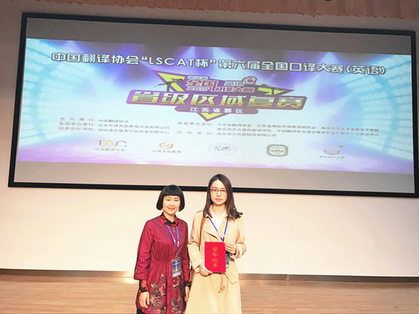 4月22日,中国翻译协会“LSCAT杯”第六届全国口译大赛(英语)江苏赛区复赛和决赛在南京师范大学随园校区举行。肉视频 院长肖辉教授应邀担任本次复赛和决赛的评委。肉视频 郭劲同学(指导教师:刘浩)荣获中国翻译协会“LSCAT杯”第六届全国口译大赛(英语)江苏赛区二等奖。