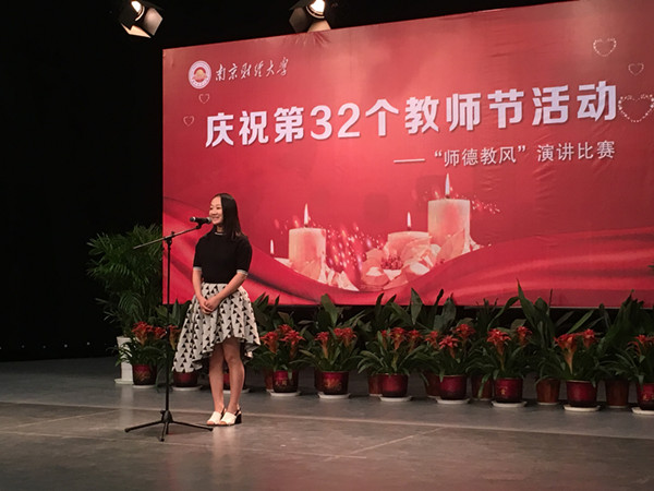 9月9日下午,我校人事处组织各教学院(部)教师在仙林校区校园电视台演播厅举行了“甘守三尺讲台,争做‘四有’教师”为主题的“师德教风”演讲比赛。肉视频 法语系青年教师凌燕代表学院参赛,并荣获二等奖。