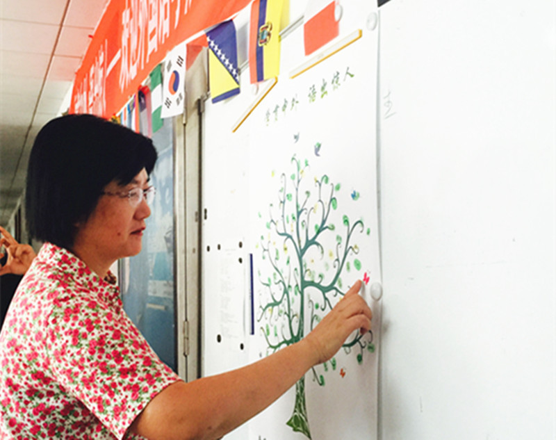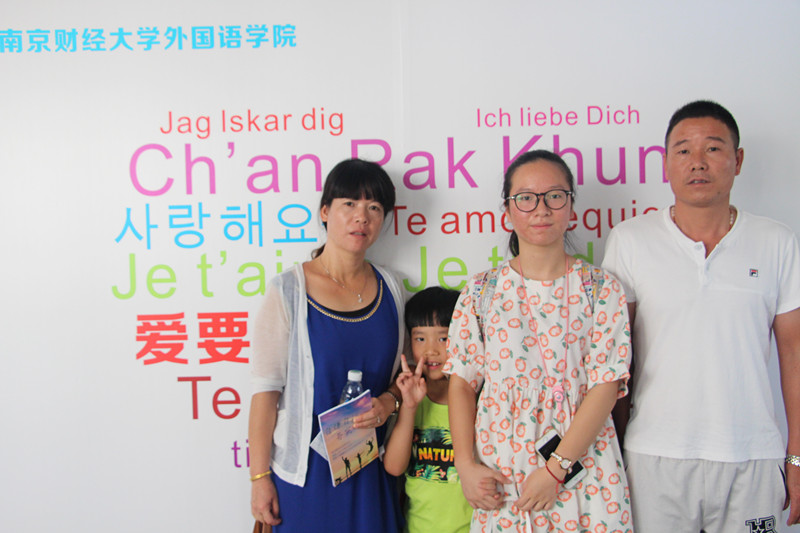 在迎新现场,学院精心悬挂了万国国旗,让语言学习的氛围在新生报到第一天就能感染新生。今年学院在迎新现场引导全体2016级新生“栽种”希望之树,在希望之树的“栽种点”按下全体新生的手纹印,绘制成一棵希望之树,这棵“希望之树”将悬挂在学院走廊,陪伴全体2016级新生度过他们宝贵的四年时光,见证学子的成长,校党委常委、副校长邱伟芬教授也加入到了“栽种”希望之树的行列。此外,学院还组织了为新生及家长拍摄全家福的活动,并倡议新生“爱要大声说出来”,让新生和父母在学院精心制作的背景墙前合影留念,向父母大声说出“我爱你”,纪念大学入学这一特殊的时刻。背景墙别出心裁地使用了十几种语言表达的“我爱你”拼成了心形图案,不仅体现了肉视频 浓厚的外语氛围,更寓意着所有2016级新生对父母家人的感恩与爱。