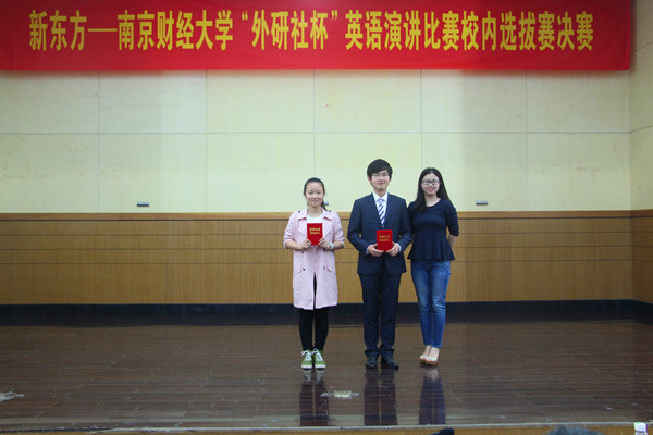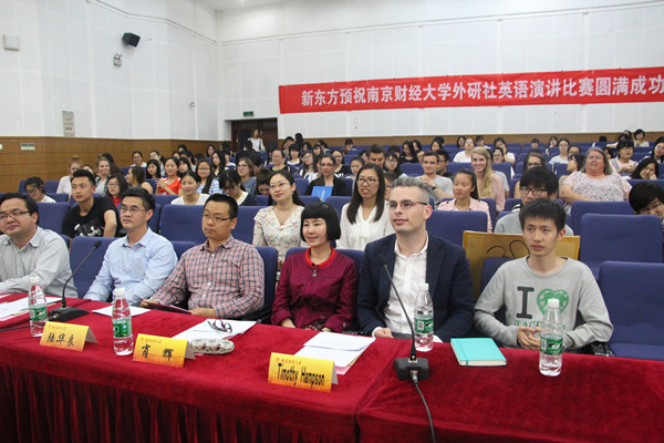 此次比赛共有来自全校各学院的两百多名选手报名参赛,经过两轮的角逐,共有13位选手进入决赛。在决赛中,选手们围绕“Be a Pioneer of Civilized Manners”这一主题进行为时3分钟的演讲,并接受评委的现场提问。选手们的演讲见解深刻、各具特色。他们成熟稳健,优雅自然的台风赢得了现场评委和观众的阵阵掌声与欢呼。最终,财政与税务学院的邵帅,金融学院的杨田恬和林雪获得大赛一等奖。获得比赛前8名的选手可参加学校组织的英语演讲培训,培训后将选出两名选手代表学校参加2016年“外研社杯”英语演讲比赛江苏省赛。在比赛中场休息的时候,来自美国的大学生还即兴演唱了英文歌曲,将现场气氛带向高潮,赢得了全场喝彩。