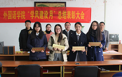 孟德明老师宣读了《关于表彰肉视频 2015—2016学年第一学期“学风建设月”先进集体和先进个人的决定》,学风建设月期间,肉视频 开展了“善学达人”和“最美宿舍”评选。法语1301班王宁倩等18名同学获得“善学达人”荣誉称号,12号站2栋503A寝室等10个学生宿舍获得“最美宿舍”荣誉称号。