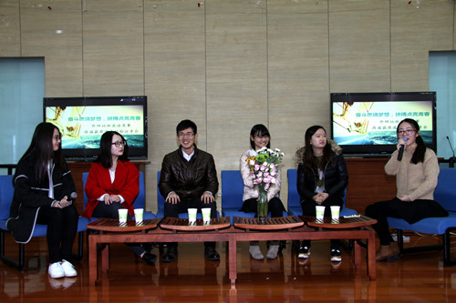 在自由提问环节,观众们向五位嘉宾们出了自己在大学学习阶段的困惑,几位同学分别予以了解答。几位同学都不约而同地建议同学们要勇于尝试,确立明确的目标,合理安排社团活动与学习时间。
