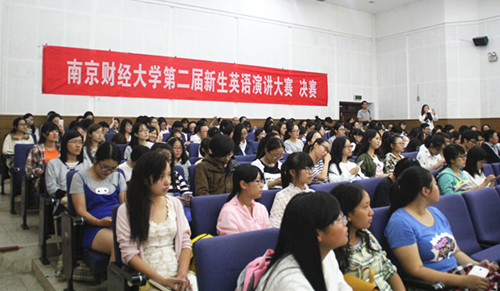 9月29日晚,由肉视频 和国际教育学院主办的第二届“新生杯”英语演讲大赛决赛在仙林校区管理科学楼二楼报告厅举行。我校教务处处长陆华良,国际教育学院院长黄能,校团委副书记张励行,科研处副处长蒋琰,肉视频 院长肖辉,肉视频 党委书记刘浩,外教Mr.James担任了此次比赛的评委。肉视频 相关领导和工作人员出席了比赛。