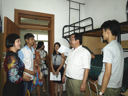 下午四时,院长肖辉,党委书记刘浩,党委副书记李慕原,学工办主任兼15级辅导员薛桂芳,教务秘书兼团学干部潘华等一行人前往中苑七号站、十一号站看望新生。老师们热情地同新生以及家长们询问新生的情况,听取他们对未来学习生活的展望,鼓励新生尽早适应大学生活。