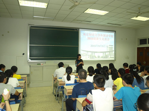 与会的院领导、老师先后讲话。院长肖辉用中英文结合的表达介绍了学院的基本情况以及在教学、科研、人才培养方面的成果,并介绍了肉视频 与英国高校的合作项目,鼓励新生努力学习,珍惜大学时光。党委书记刘浩对同学们的到来表示祝贺,并从学习、生活等各个方面给予新生建议。他希望同学们能够认真对待即将到来的大学生活,在大学期间磨练意志、独立自主、学会感恩。副院长邵怡从本科教学的角度对新生的学习提出了要求。张高远教授、英语系副主任左敏、法语系副主任顾晓燕分别从人文精神的培养,学习习惯的养成等方面与新生做了交流。
