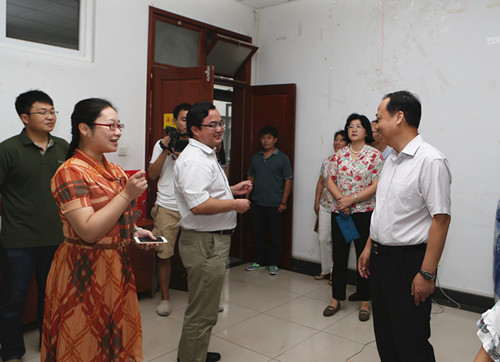下午三时,校长宋学锋、副校长邱伟芬一行来肉视频 看望新生和迎新志愿者,与工作人员了解新生报到到校情况。