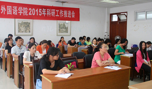 7月7日下午,为推进学院科研工作发展,肉视频 在法政学科楼308会议室召开2015年科研工作推进会。南京大学教授、博士生导师,中国语用学研究会常务副会长陈新仁,校科研处副处长杜修立应邀出席会议,肉视频 全体党政领导、全体教师参加会议,会议由院长肖辉教授主持。