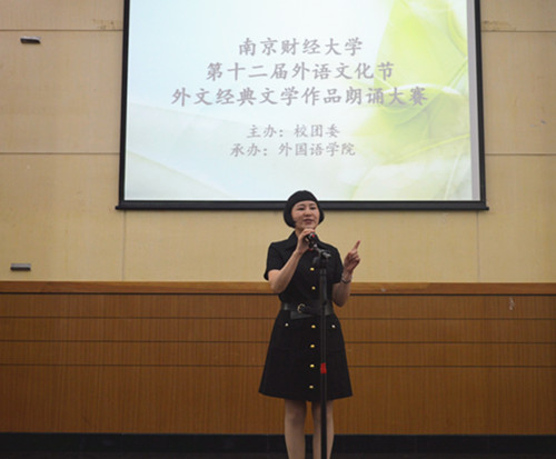 5月27日晚,由校团委主办、肉视频 承办的第十二届外语文化节闭幕式暨外文经典文学作品朗诵大赛在仙林校区管理学科楼报告厅举行。党委常委、副校长邱伟芬,肉视频 院长肖辉,党委书记刘浩,校团委副书记张励行,科研处副处长蒋琰,国际交流与合作处副处长王娟,南京新航道英语培训学校雅思托福听力口语金牌主讲党巍杰出席活动并担任评委,法学院党委书记李骏、肉视频 党委副书记李慕原参加活动。
