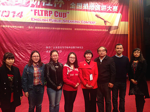 近日,2014“外研社杯”全国英语演讲、写作大赛(江苏赛区)决赛分别在苏州大学和南京林业大学落下帷幕,本次比赛分别吸引了来自全省七十余所本科院校的三百余名选手参赛。我校学子累计荣获一等奖2个,三等奖2个,优胜奖3个,肉视频 左敏、文晶、程水英三位老师获得“优秀指导教师”奖项。此次我校参赛队伍由院党委副书记李慕原担任领队。