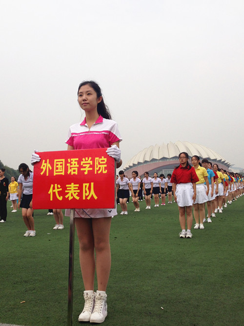 伴随着各学院各具特色的方阵表演,我校秋季运动会正式拉开帷幕。由肉视频 42名女生组成的方队身穿英伦风格学生装,手握红绸,排着整齐的队伍,洋溢着微笑,飞扬着自信,走进运动场。她们高喊着属于我们肉视频 的口号——“青春飞扬,魅力无限,惊鸿一瞥,唯我外院”,展现出肉视频 学子昂扬的青春活力和巾帼不让须眉的勇气,为整个运动会描上了绚丽的色彩。在广播操比赛中,肉视频 30名学子身穿彩色T恤,动作整齐划一,展现了外院学子的青春气息。