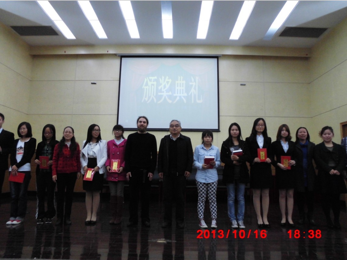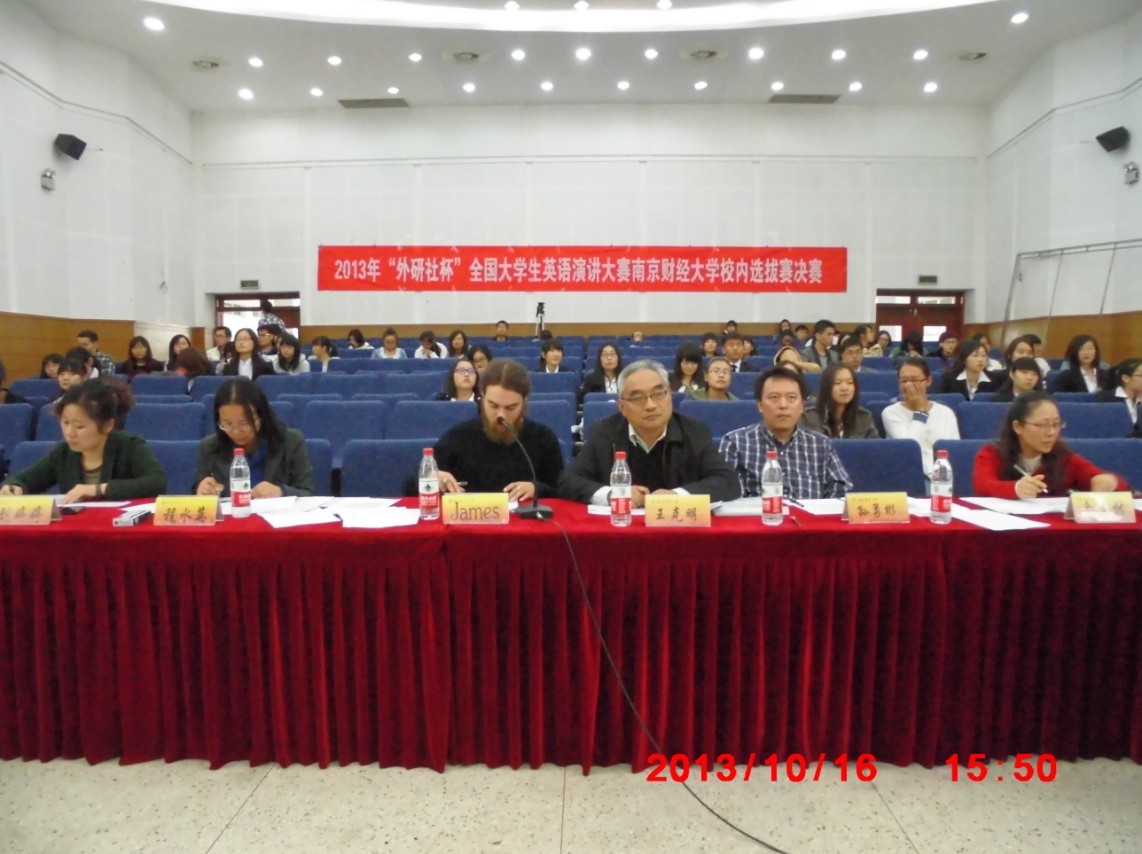 专二报告厅的下午可谓是热闹非凡,各种穿着正装西服的学生穿梭在走道上,手中拿着演讲稿,嘴里念念有词。这是因为今天下午三点半由肉视频 承办的“外研社杯”全国大学生英语演讲比赛肉视频 校区选拔赛的决赛将在这里举行。来自肉视频 ,财政,商务,以及红山学院等十几个院系共三十六名选手晋级到了决赛中,在这场英语盛宴中进行最后的角逐,一决雌雄。