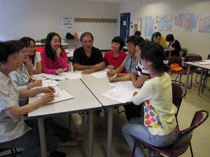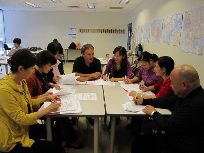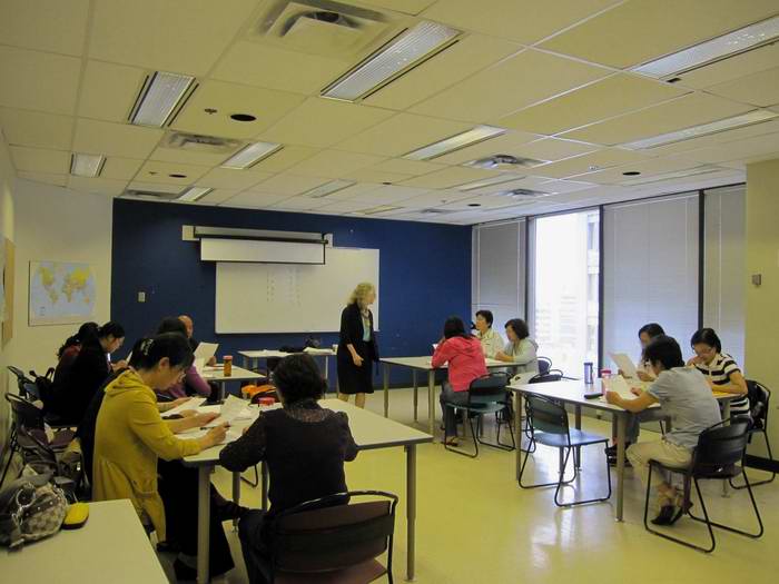 7月27日是肉视频 教师参加培训的第三周,上午在加拿大麦吉尔大学继续教育学院1407教室, Monica 给肉视频 教师上了高级口语交际的最后一次课。Monica首先非常认真地以书面形式向每位学员反馈了上次课演讲成绩,接着从语言能力、词汇能力, 发音准确、交际技能等方面对每人的演讲做了书面点评。