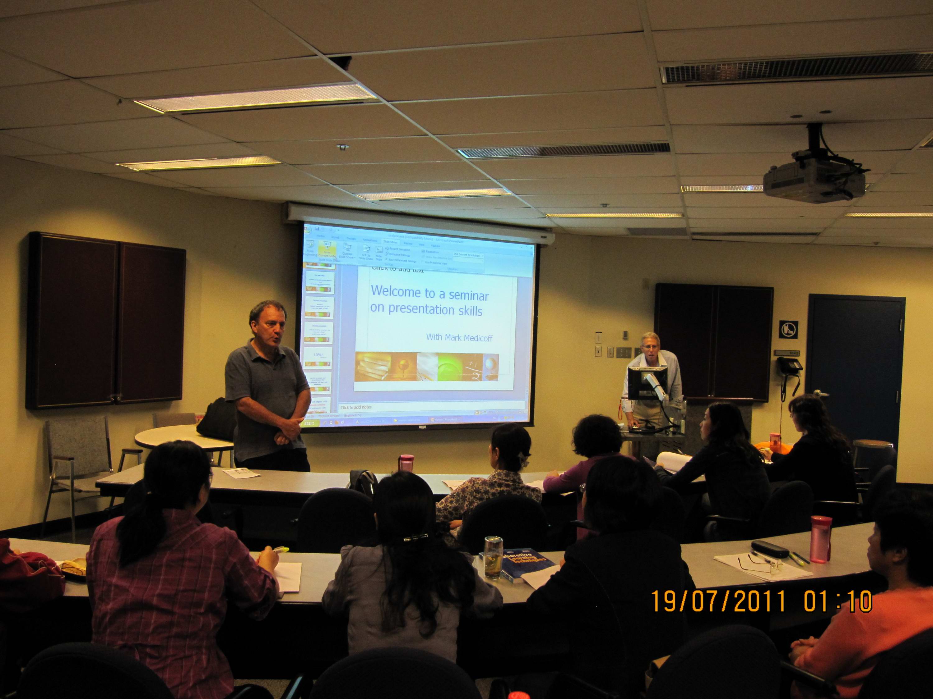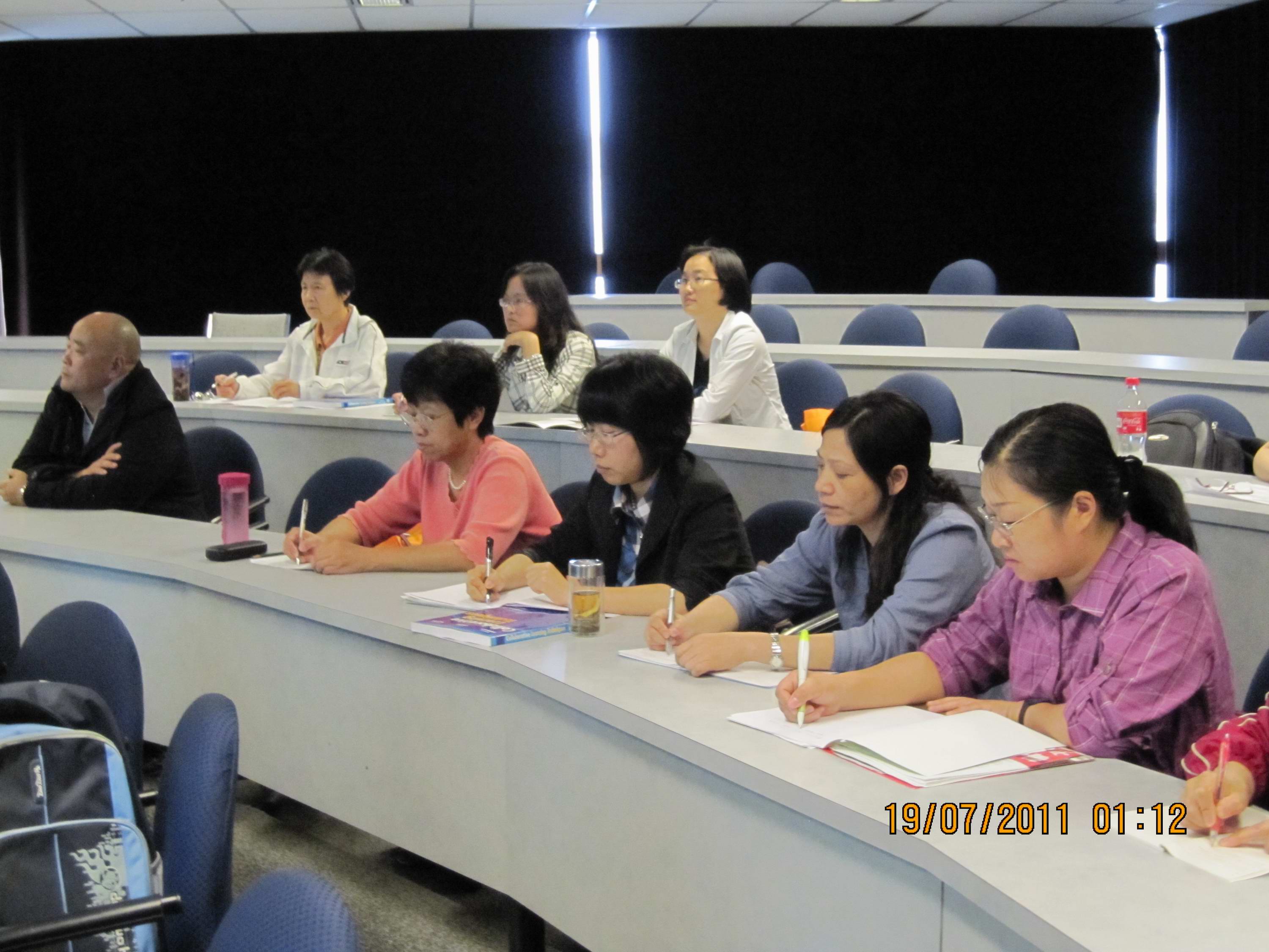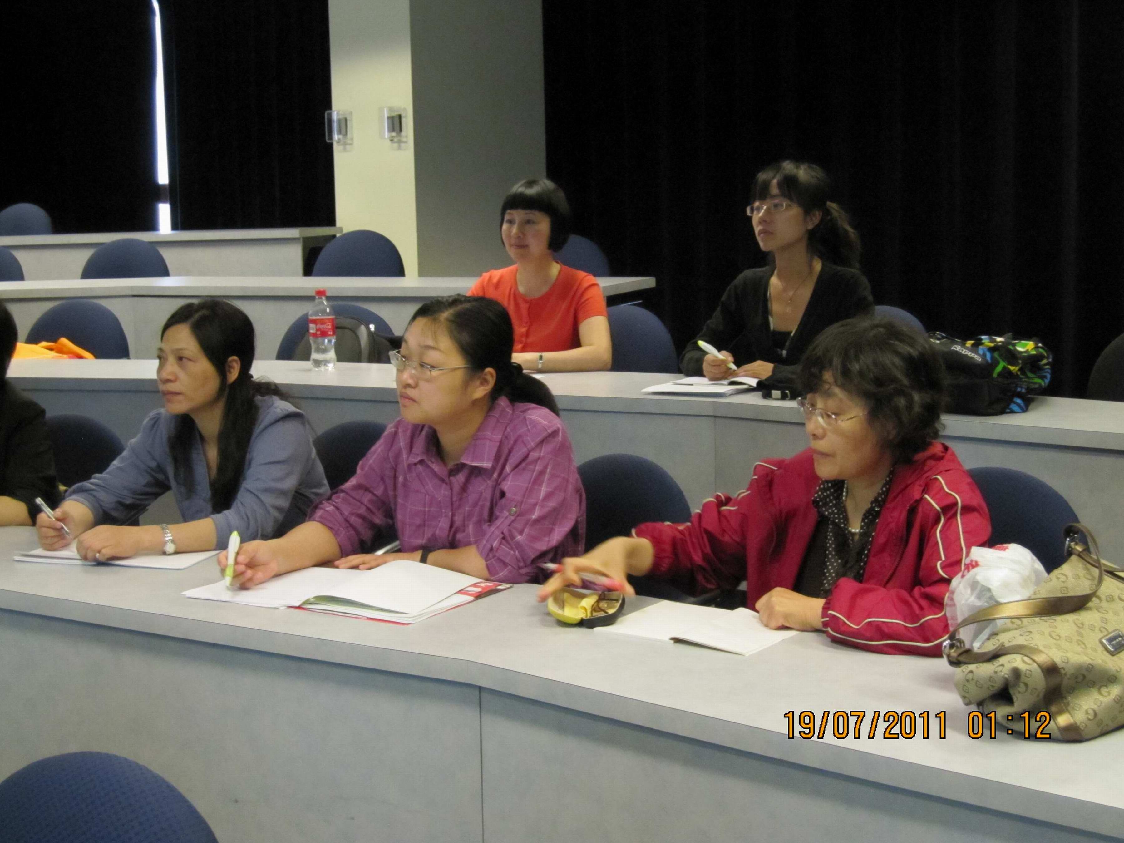 7月18日下午在加拿大麦吉尔大学继续教育学院1041礼堂,肉视频 教师亲身感受了著名教授Mark Medicoff风趣生动的“演讲技巧”讲座。讲座自始自终师生互动。讲座过程中学员走上讲台展示不同的授课技巧、体验教学理念在课堂教学中的实际应用。讲座在教师们的热情投入中结束。图为肉视频 教师参加培训的实景。