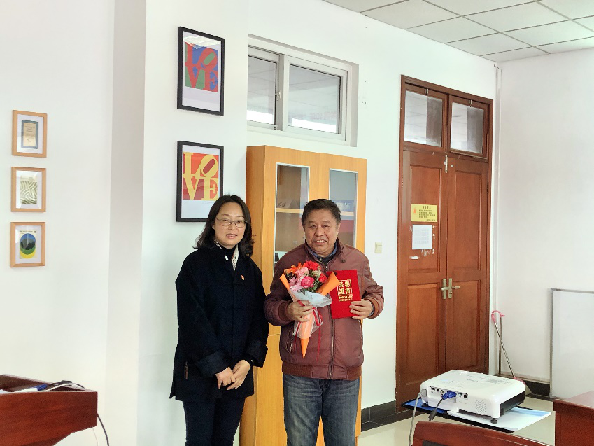 会议为教龄满40年、30年的教师举行了隆重的颁奖与庆祝仪式。截止到2020年12月,学院教龄满30年的老师有:魏钟、叶家泉、李金荣、潘秋凤、游思淳、邵欣欣、李丽萍、李群、褚玉襄、张玉英、胡美珠、沈文霄、张高远、周明、周标、凌成德、肖辉;教龄40年以上的是:李俊儒。学院班子成员为老师们颁发“教书育人奖”荣誉证书,并赠送鲜花,表达对老师们桃李满天下、终生育人的情怀。