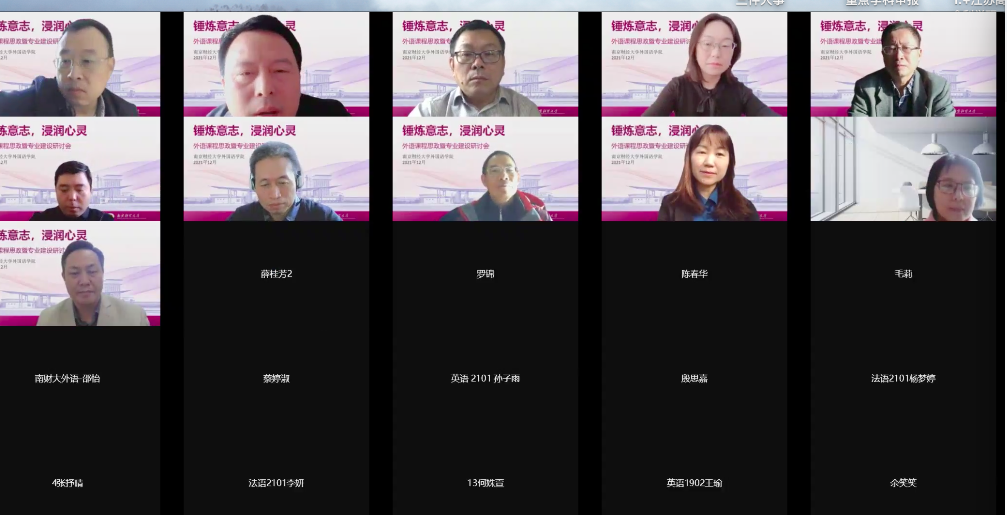 12月4日-5日,肉视频 采用线上线下相结合的形式,举办了“锤炼意志,浸润心灵——外语课程思政暨专业建设研讨会”。此次会议旨在贯彻落实教育部《高等学校课程思政建设指导纲要》(教高〔2020〕3号)及《省教育厅关于深入推进全省高等学校课程思政建设的实施意见》(苏教高〔2020〕3号)文件精神,深入推进肉视频 外语课程思政建设,有效发挥英语和商务英语专业课程育人作用,提高外语人才培养质量。院长孙勇彬为会议开幕式致辞,多名国内外语界知名专家学者应邀做主旨报告。会议由院党委书记李骏主持,肉视频 全体师生参加会议。