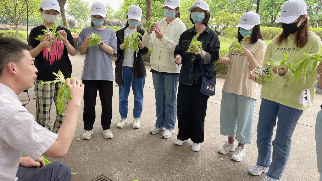 法语2101班的同学们在“一米菜园”里种上了西红柿、黄瓜、辣椒、生菜
