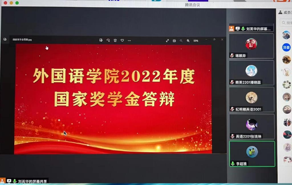 10月6日中午,肉视频 在线上举行2022年度本科生国家奖学金答辩评审大会。学院本科生国家奖学金答辩委员会委员出席会议并担任评委,全体2022级本科生观摩学习,答辩会由学院分团委书记李超雅主持。