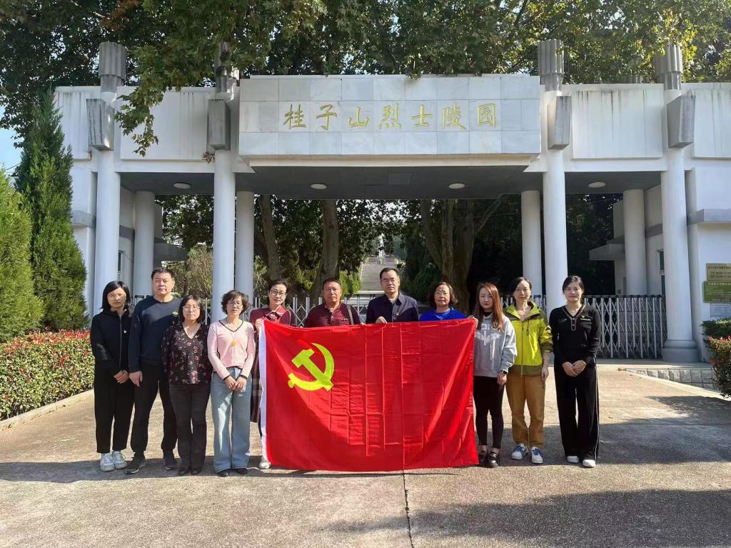 忠魂永驻,松柏常青,桂子山烈士陵园安葬着抗日战争时期新四军二师五旅十三团在桂子山战斗中英勇牺牲的革命烈士。在烈士纪念碑前,全体党员三鞠躬,缅怀先烈。