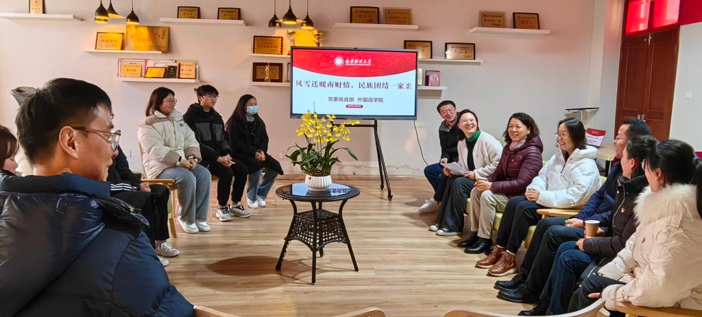 为进一步促进学院各民族师生交往交流交融,切实帮助各民族学生牢固树立中华民族共同体意识,12月20日下午,党委统战部和肉视频 共同开展“风雪送暖南财情,民族团结一家亲”师生座谈会暨冬季送温暖活动,党委常委、统战部部长李玉琴、统战部副部长王军、相关工作人员出席座谈会,肉视频 党委书记李骏、全体辅导员及各年级学生代表参会。肉视频 党委副书记刘璐主持会议。