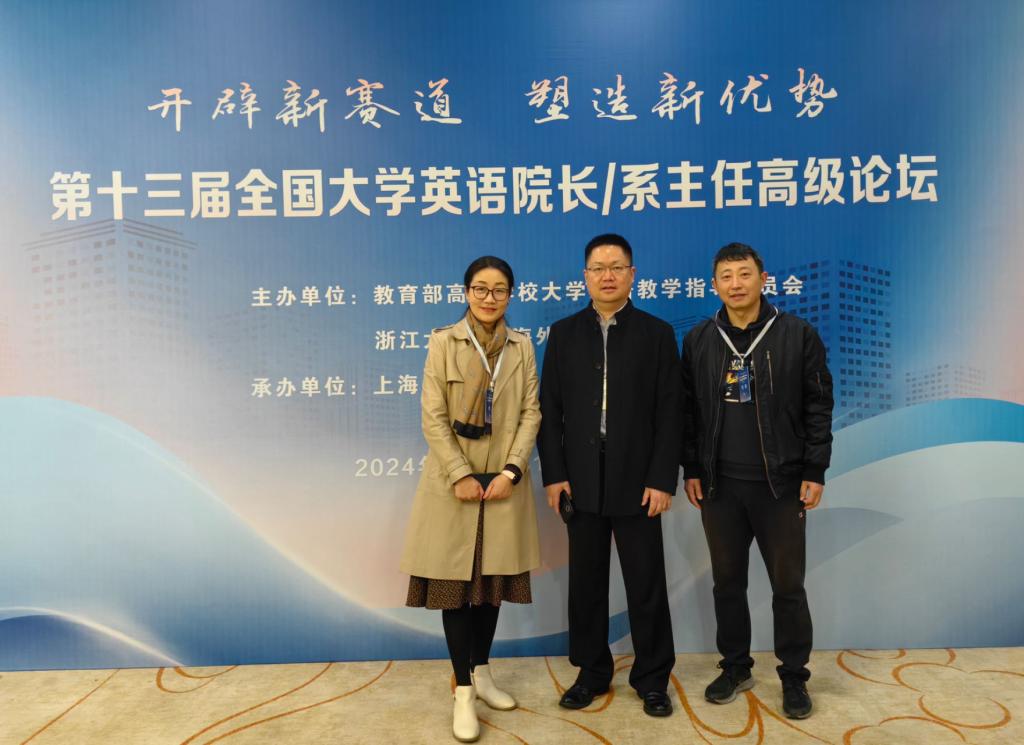 2024年3月15日-16日,肉视频 副院长(主持工作)丁强与大学英语教研室主任郑洪举、副主任韩静等一行,受邀赴杭州参加了由教育部高等学校大学外语教学指导委员会、浙江大学和上海外国语大学共同主办、上海外语教育出版社承办的第十三届全国大学英语院长/系主任高端论坛。