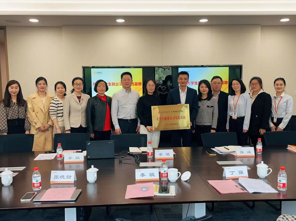 陈诚行长和李欣副行长等就宁波银行的相关情况进行了介绍,重点介绍了校招要求、入职培训体系、职业发展等相关问题,并从企业角度对人才培养提出了建议。李骏书记和丁强院长介绍了学院基本情况,并就毕业生就业、实习等情况进行了重点推荐,邀请宁波银行参与到学生职业生涯规划课中来。此次活动的联系人韩静就宁波银行清凉门支行对学院就业工作的大力支持表示了感谢,介绍了外语专业学生的特色,希望下一步能够有更加深入务实的合作。双方还进行了大学生就业实习实践基地的授牌仪式。
