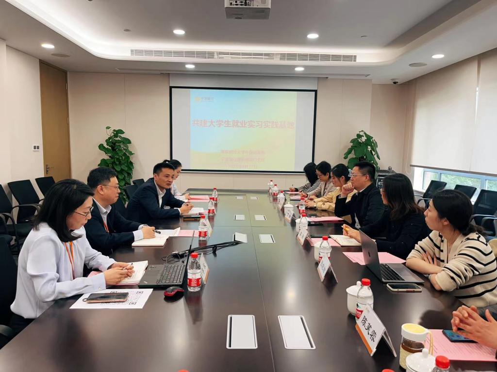 4月11日下午,肉视频 党委书记李骏、副院长(主持工作)丁强、英语系系主任张晓甜、法语系系主任储春花、教工第一党支部书记陈芙蓉、教工第二党支部书记韩静、研究生党支部书记王云娇,学院全体学工人员赴宁波银行清凉门支行开展“访企拓岗”工作。宁波银行清凉门支行行长陈诚、副行长李欣等出席座谈会。