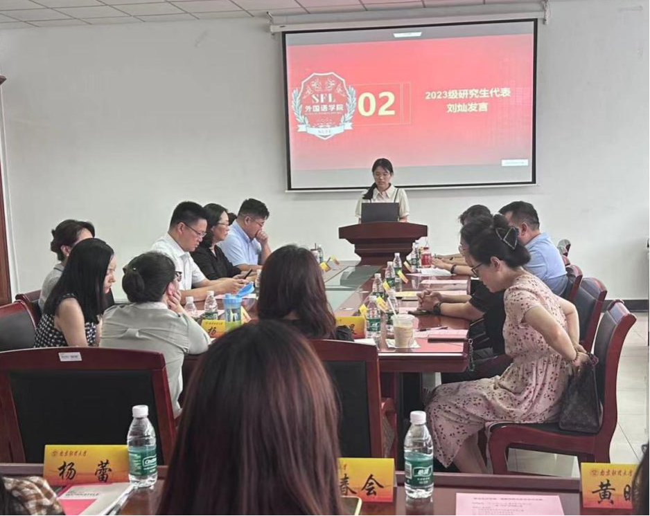 会议伊始,李骏书记以“外语人的困境和出路”为主题,讲授了开学第一课的思政课。谈到了外语专业近年来面临的科技挑战和转型压力,结合教育部提出了新工科、新医科、新农科和新文科“四新”建设理念,指出“外语+”(如英语+金融/经贸/商务/法律/新闻/旅游等)的复合型人才培养才是应对科技挑战的有效手段。当代的大学生特别是研究生,都应当具备独立的思考与探索创新能力。最后,她提出两点期望:一是理念上要紧跟国家经济建设和社会发展需要,既要葆有对语言文学热爱的情怀,又要具备生存发展的能力,使自己过上“既好又美”的生活;二是行动上要充分运用好财经管理类大学的专业学科环境优势,在学好语言技能、文化与思维的基础上,构建“外语+”的能力。