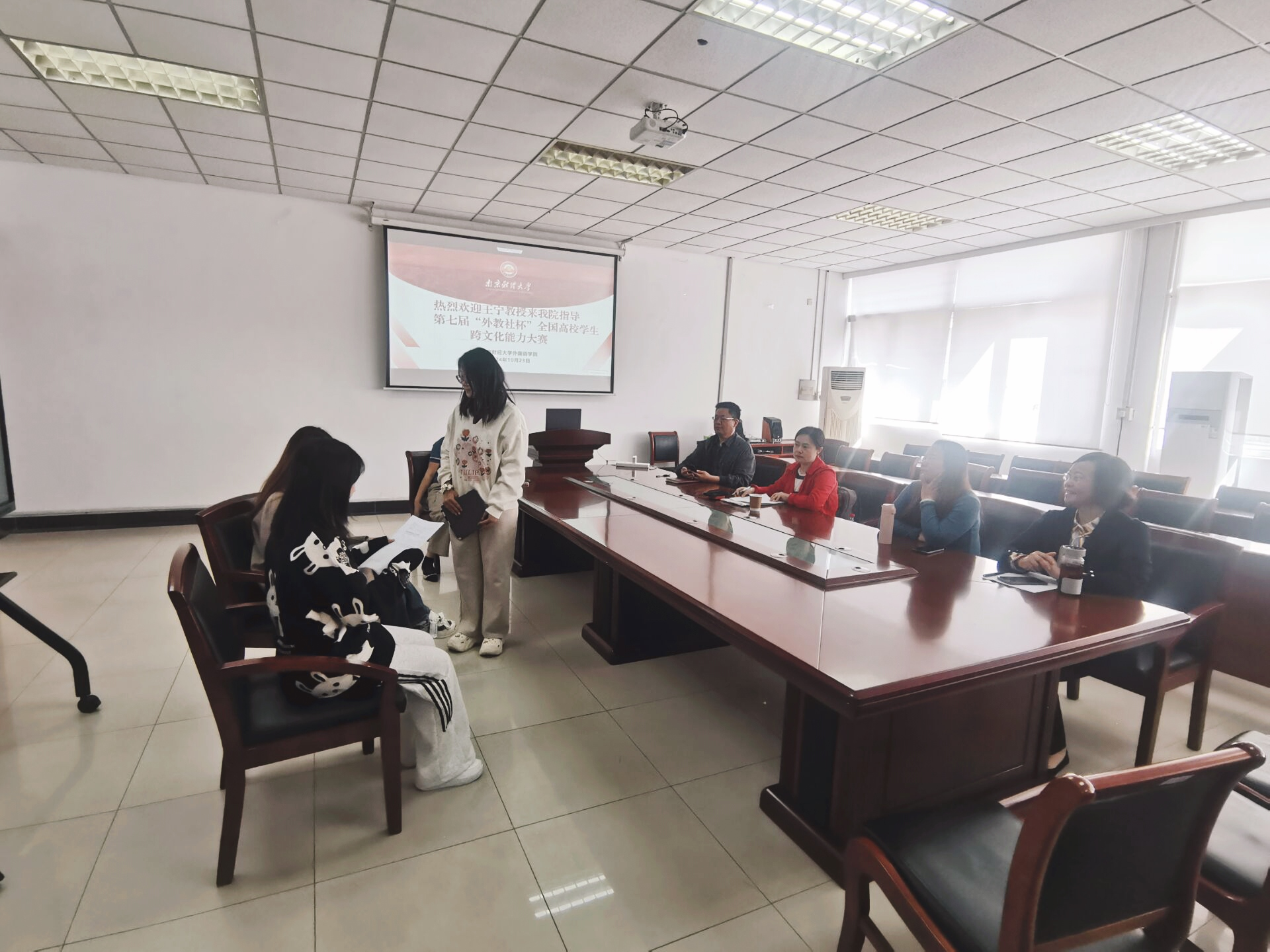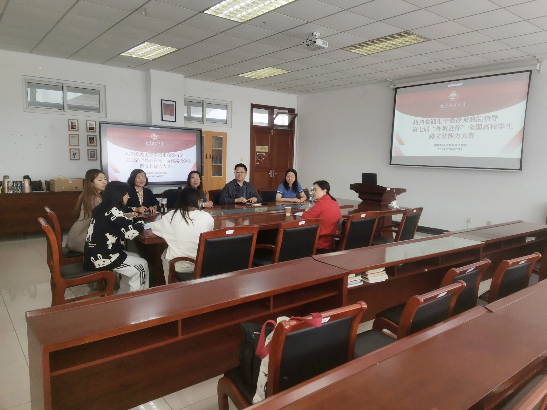 为了进一步提升我校师生在第七届“外教社杯”全国高校学生跨文化能力大赛省赛中的各项水平,肉视频 特邀苏州城市学院王宁教授来肉视频 传经送宝。王宁教授在跨文化能力大赛方面经验丰富,多次承担“外教社杯”全国高校学生跨文化能力大赛的评委。10月23日下午,王宁教授在德政楼308会议室,专门给我校参赛的选手在案例展示,案例分析等几个方面进行了详细的指导。肉视频 丁强副院长(主持工作),陈芙蓉副教授,程水英老师和解艳老师,以及三位参赛学生选手参加了本次指导。