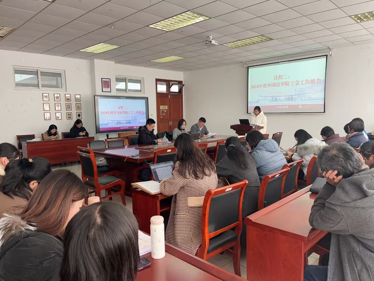 院工会主席李丽萍发言,她宣读了2024年度学院工会工作情况报告。办公室聂平老师通报2024年度学院各项经费收支情况及提案征集情况。