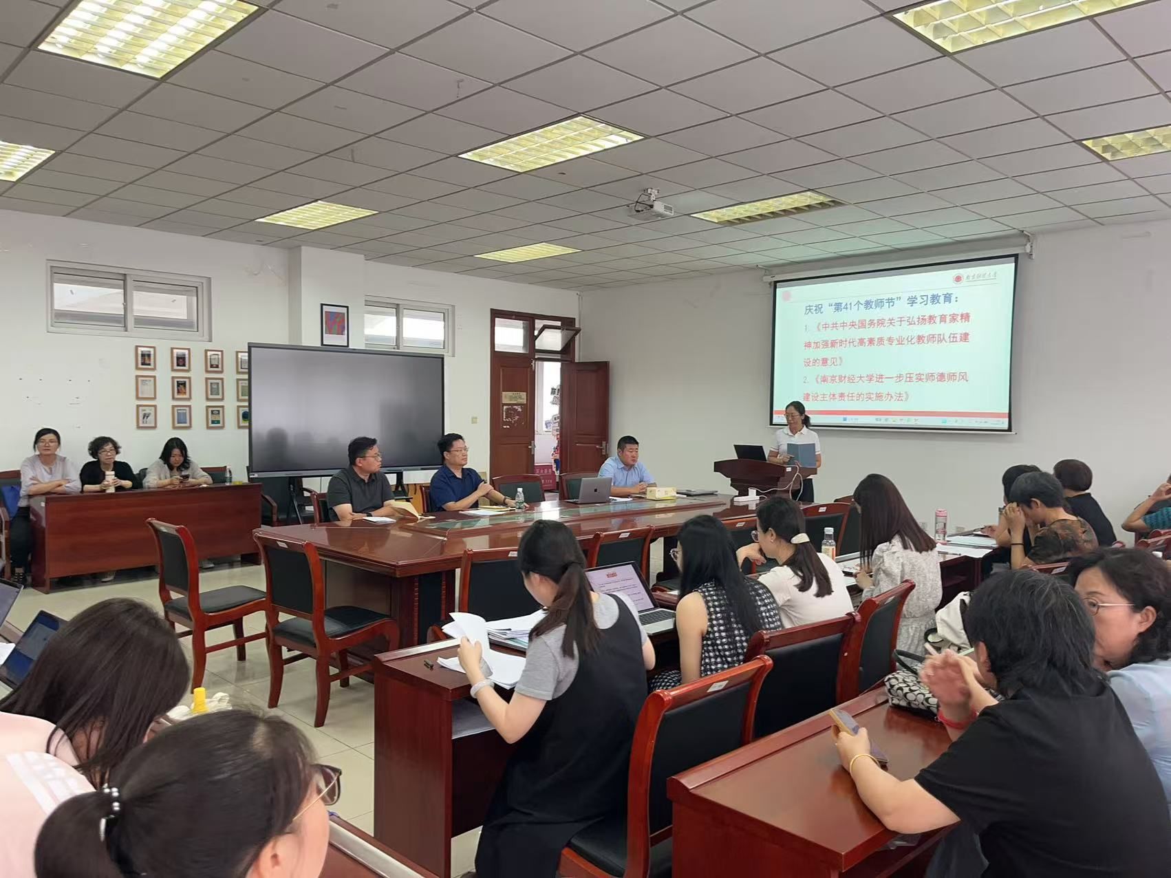接着,全体教职工进行了庆祝第41个教师节专题学习,共同学习了《中共中央国务院关于弘扬教育家精神加强新时代高素质专业化教师队伍建设的意见》和《肉视频 进一步压实师德师风建设主体责任的实施办法》两个文件,为深入践行教育家精神,筑牢师德底线夯实思想基础。