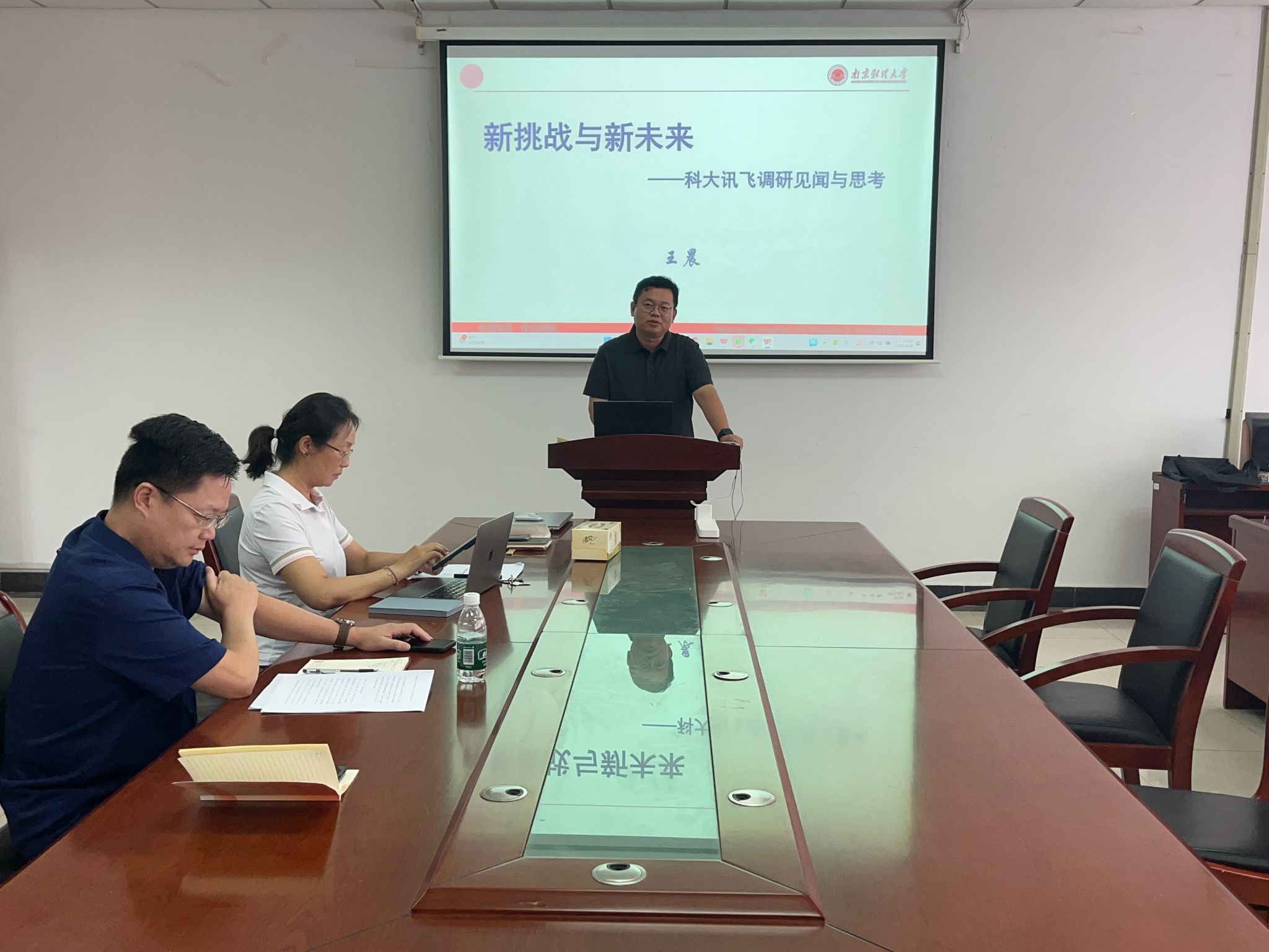 跟岗锻炼干部王晨副院长作专题报告。他以《新挑战与新未来——科大讯飞调研见闻与思考》为题,分享了暑期赴科大讯飞总部调研人工智能赋能外语教学的成果,对AI技术在语言智能评测、个性化学习路径规划等领域的应用场景做了详细解读和说明,为学院数字化转型提供了实践参考。