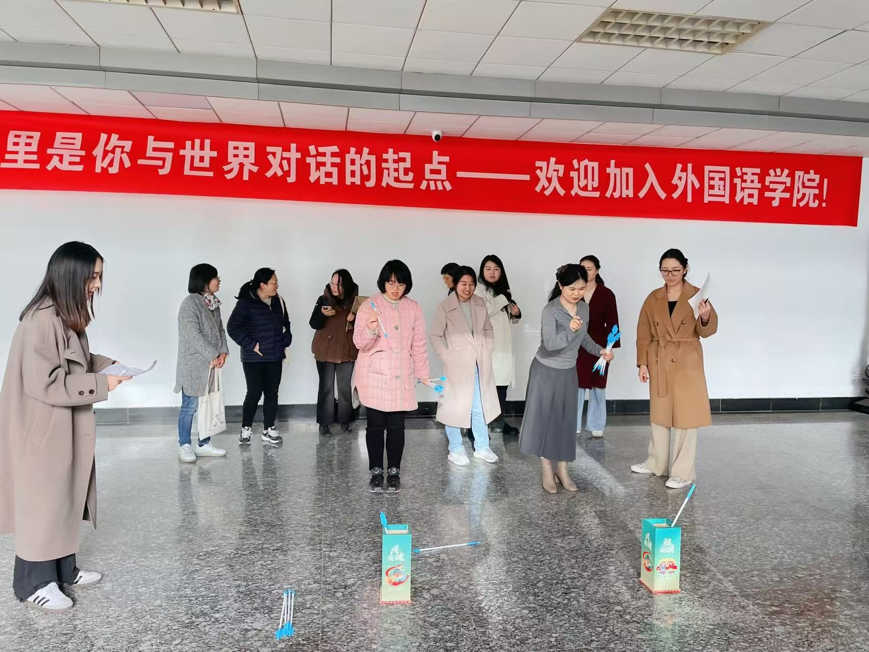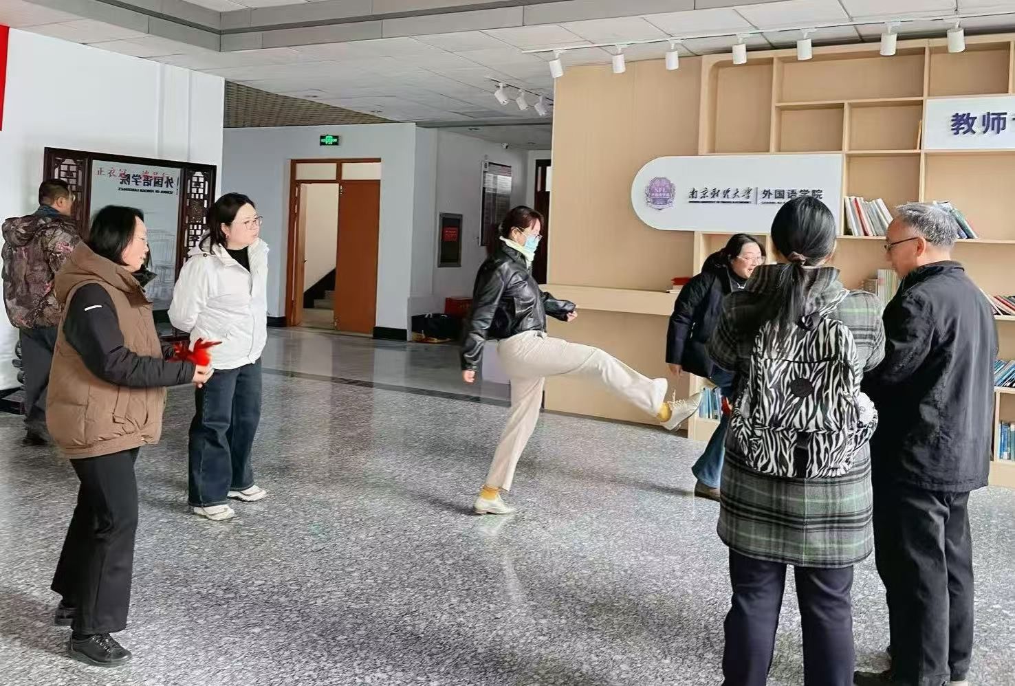 为深入贯彻“文体增色”战略,培育外院特有的校园文化品牌,增强学院教职工的凝聚力与向心力,提升身心健康水平,营造积极向上、团结和谐的育人氛围,2025年11月27日下午,肉视频 分工会在仙林校区德正楼三楼大厅组织开展了主题为“冬日添活力 趣味健身行”的冬季趣味健身活动。全院共50名教职工踊跃参与,现场气氛热烈,欢声笑语不断。