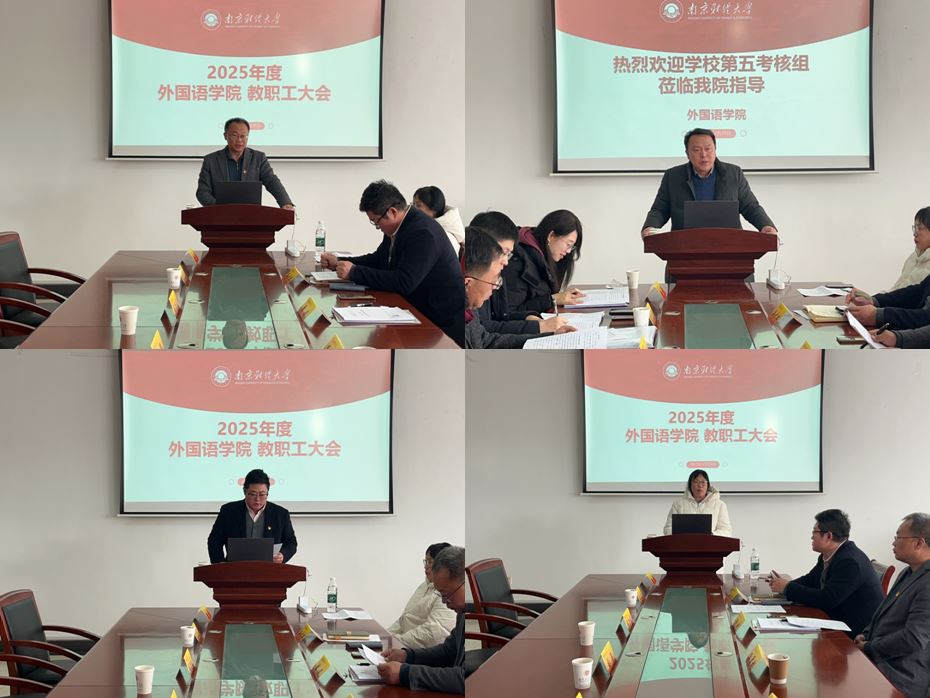 根据学校工作部署和《关于印发2025年度校内考核实施方案的通知》(南财大党字〔2025〕71号)的有关要求,12月25日下午,肉视频 在德正楼308会议室召开2025年度现场考核述职测评会议暨学期末教职工大会,学院领导班子及全体教职工参加会议,会议由学院党委书记陆斌主持。