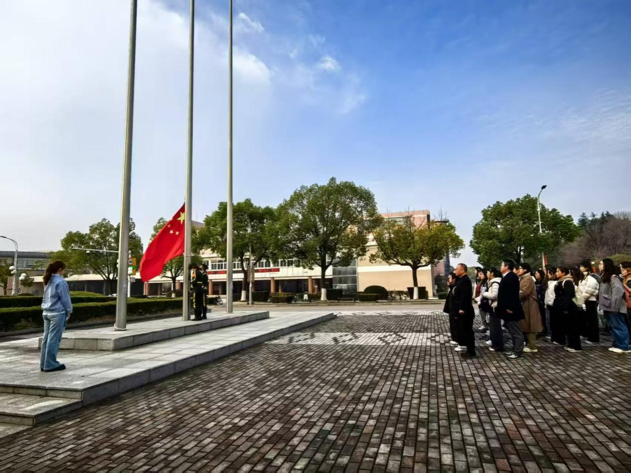 仪式由英语2502蔡诗妍同学主持。在全体师生的注目礼下,英姿飒爽的国旗护卫队迈着铿锵有力的步伐,护送鲜艳的五星红旗入场。伴随着雄壮激昂的《义勇军进行曲》,五星红旗冉冉升起,迎风飘扬。全体师生高唱国歌,歌声嘹亮,表达对祖国的无限热爱与崇高敬意。