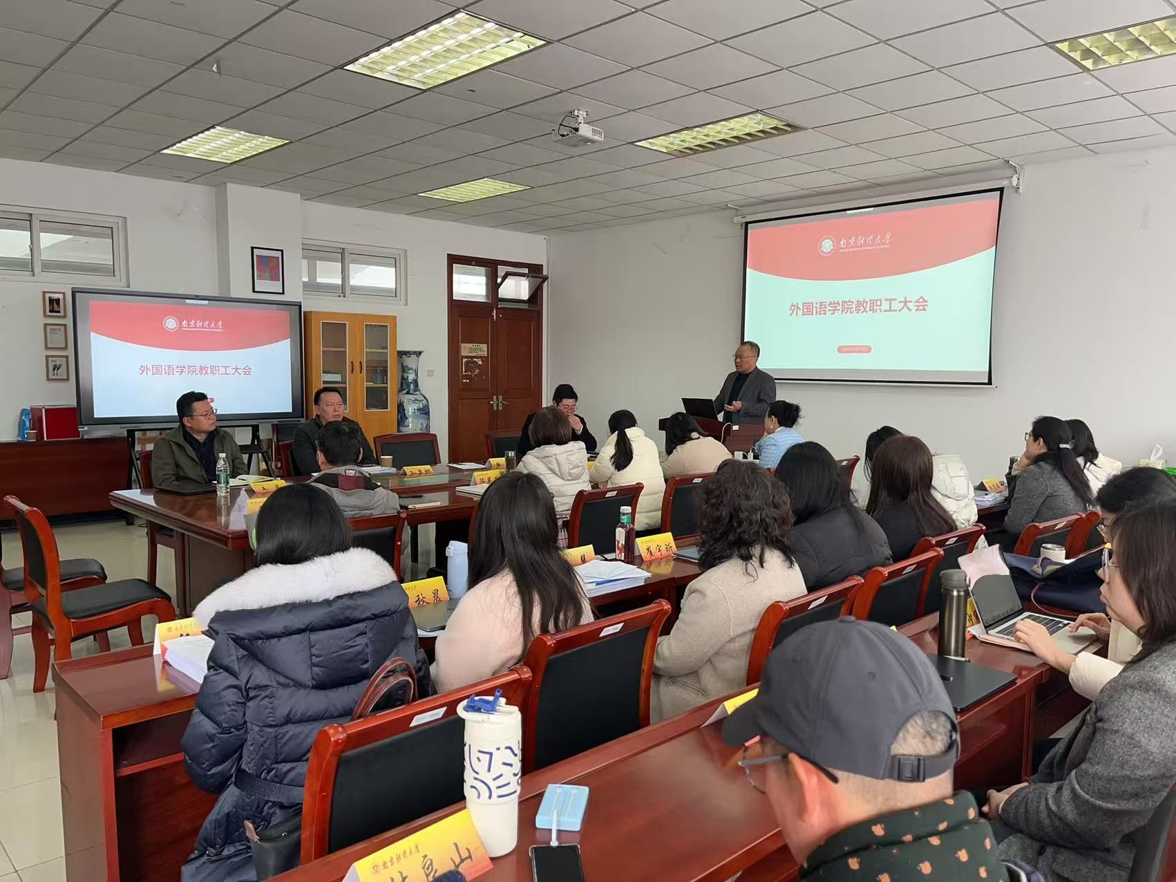 3月12日下午,肉视频 在德正楼308会议室,组织召开新学期第一次全体教职工大会,会议由院党委书记陆斌主持。