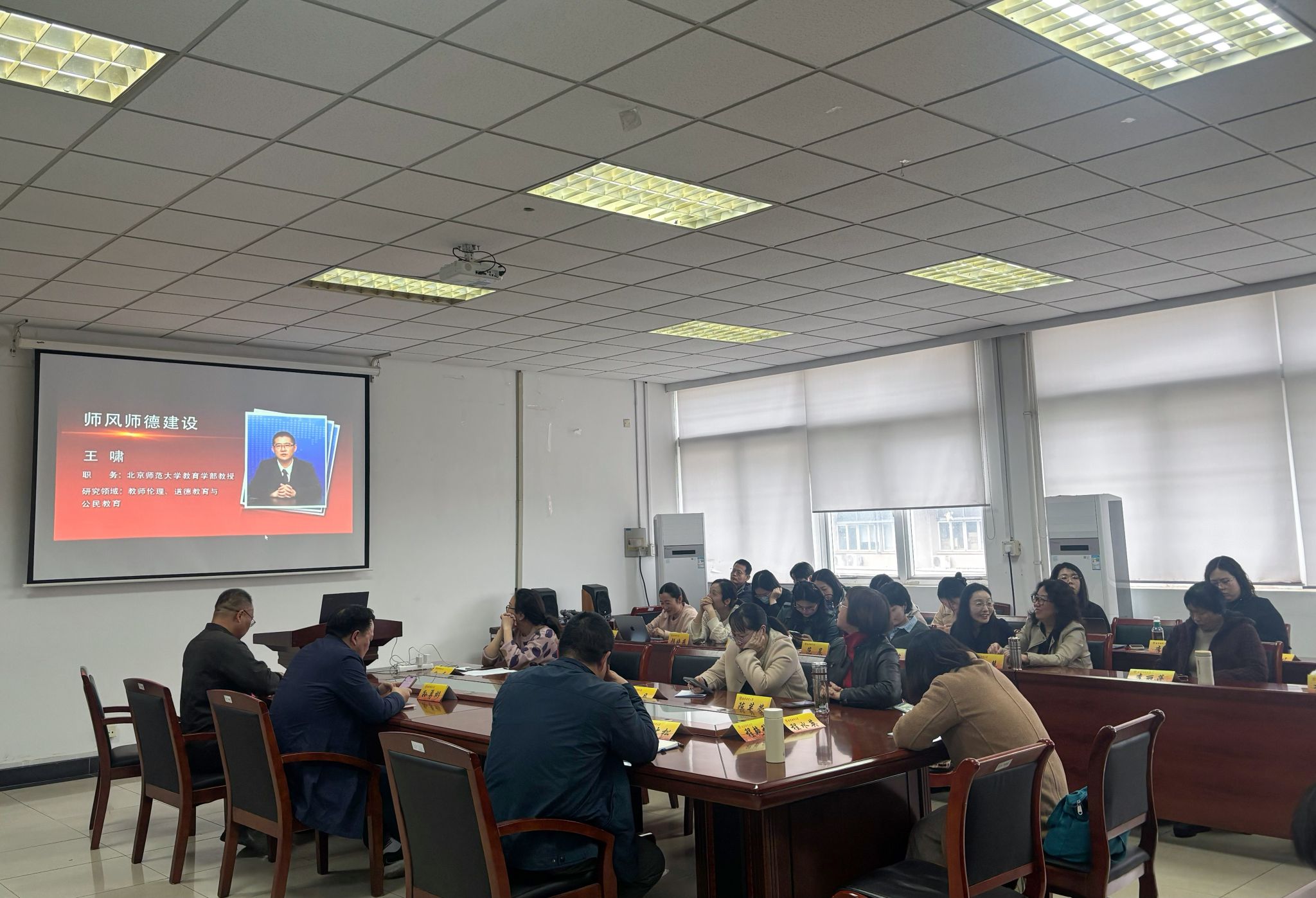 4月9日下午,肉视频 在德正楼308会议室,组织召开全体教职工大会,主题是师德师风教育学习。会议由院党委书记陆斌主持。