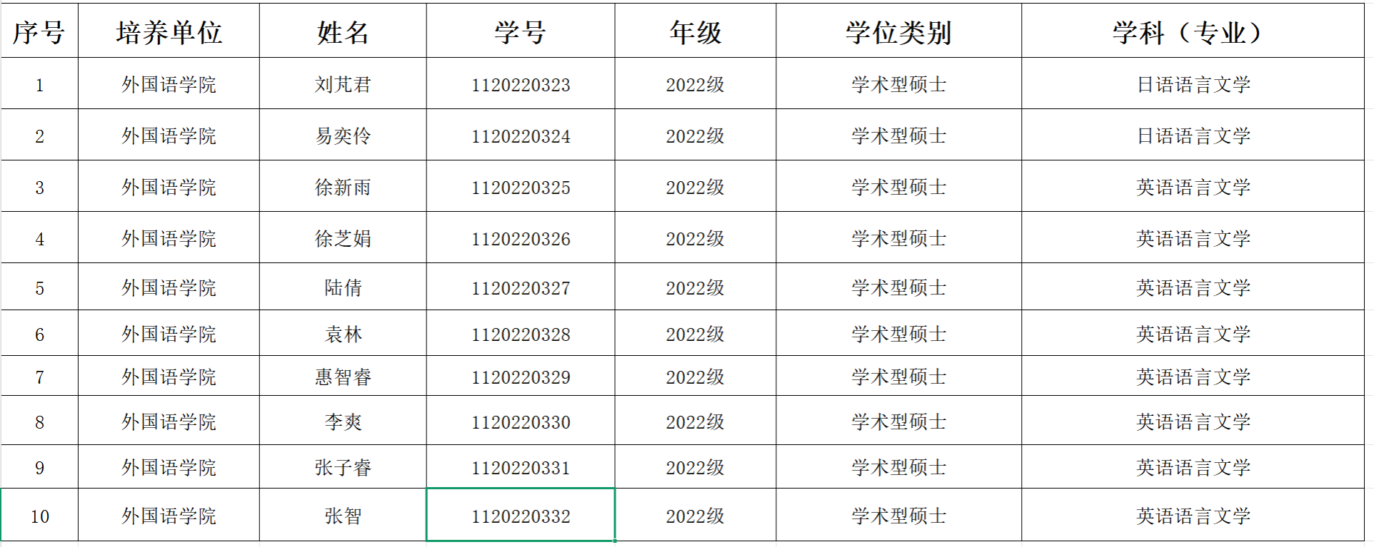 根据《肉视频 硕士研究生授予学位工作细则》规定,经肉视频 学位委员会审核,同意授予2022级刘芃君等10位同学硕士学位,具体名单如下: