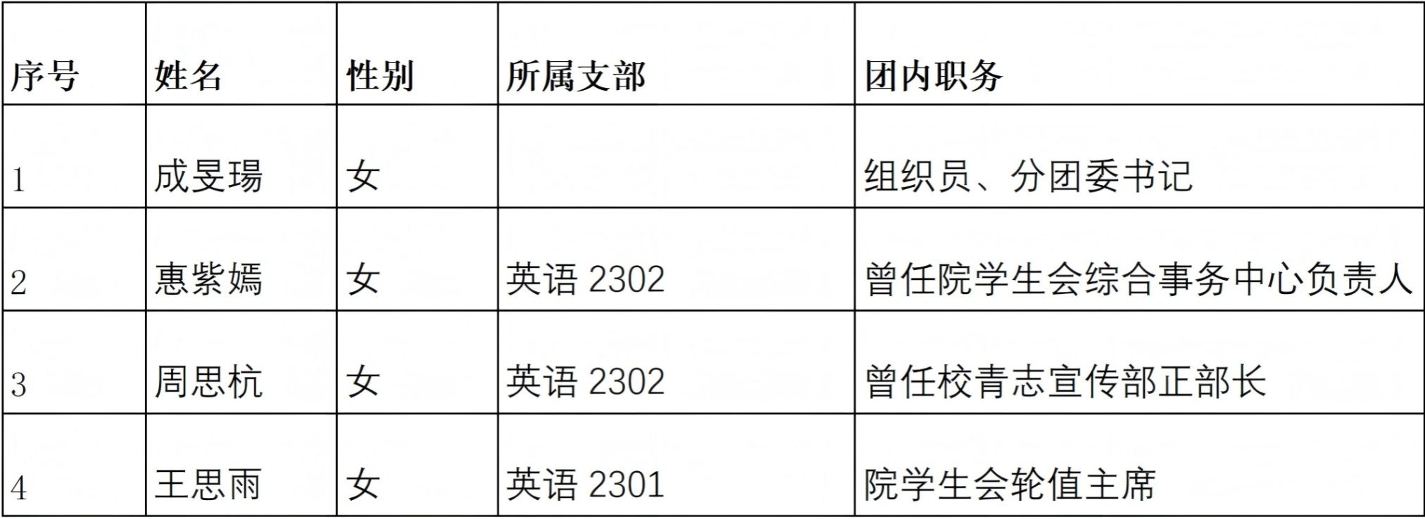 2026年肉视频 “优秀共青团干部”拟推荐名单(排名不分先后)