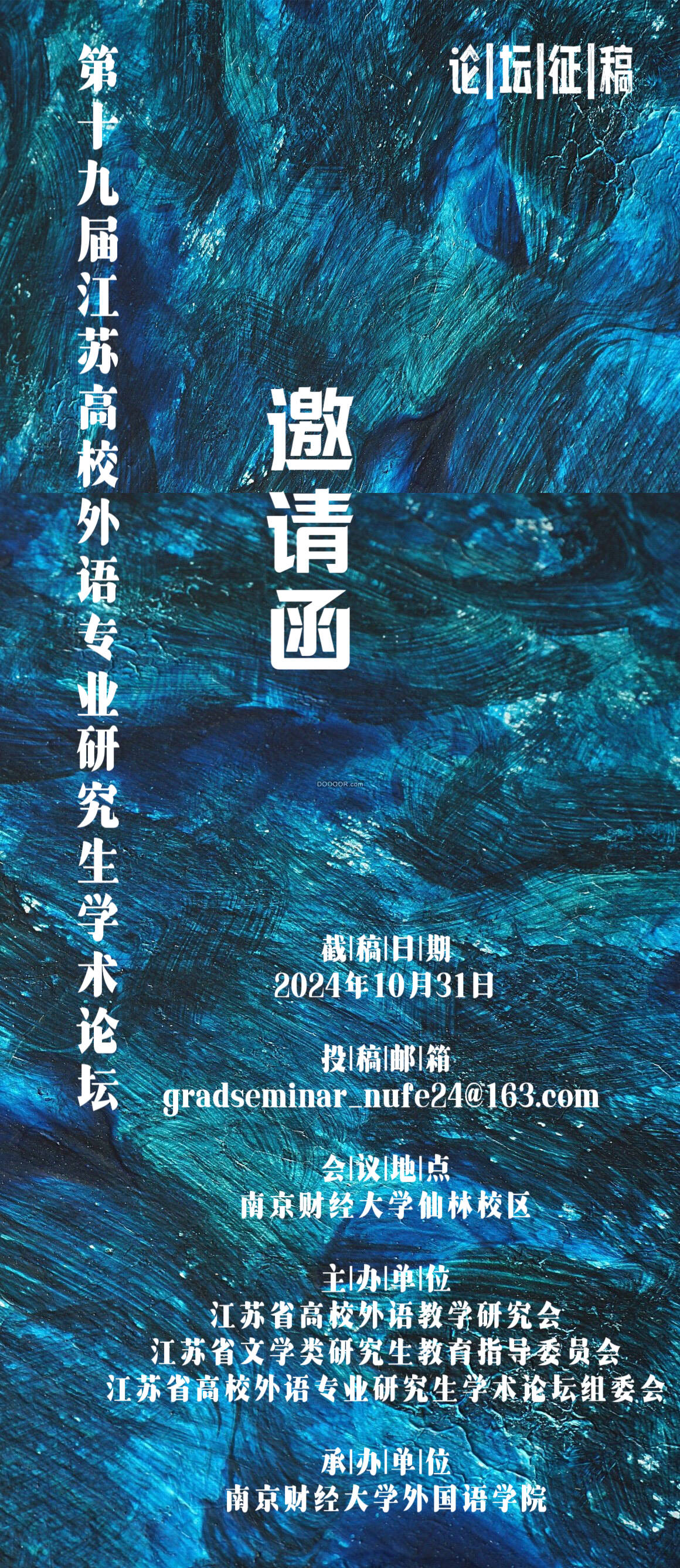 江苏省外国语言文学研究生学术创新论坛是聚焦外国语言文学领域前沿问题,立足江苏、面向长三角、辐射全国的研究生创新培养与学术交流平台。为提升江苏省研究生教育水平,加强学术交流与合作,提升研究生培养质量,培养国际视野和跨文化沟通能力,促进学术水平和科研能力的提高,受江苏省高校外语教学研究会、江苏省文学类研究生教育指导委员会、江苏省高校外语专业研究生学术论坛组委会委托,肉视频 拟定于2024年11月30日-12月1日承办“第十九届江苏高校外语专业研究生学术论坛”。