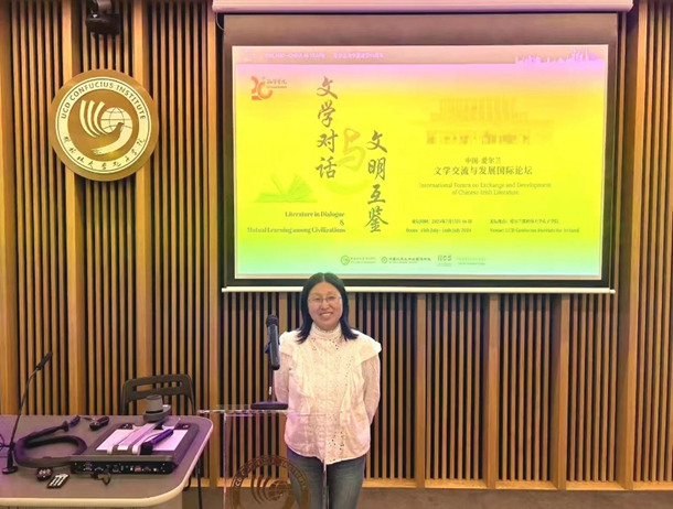 2024年7月15日至7月19日,肉视频 副教授蒲婧新老师参加了在爱尔兰都柏林大学孔子学院与爱尔兰中国研究院举办的“文学对话与文明互鉴”——中国-爱尔兰文学交流与发展国际论坛”,并发表了主题为“余华与塞缪尔·贝克特:文学视域中的哲学共鸣的发言。该论坛吸引了来自中国、英国、美国和新加坡的56名专家、学者和博士生参与,围绕“文学对话与文明互鉴”这一主题,与会代表深入探讨了世界文学视域中的中国与爱尔兰、中国与爱尔兰文学比较研究、中国学者眼中的爱尔兰小说研究,以及爱尔兰戏剧的中国翻译与研究等重要议题。