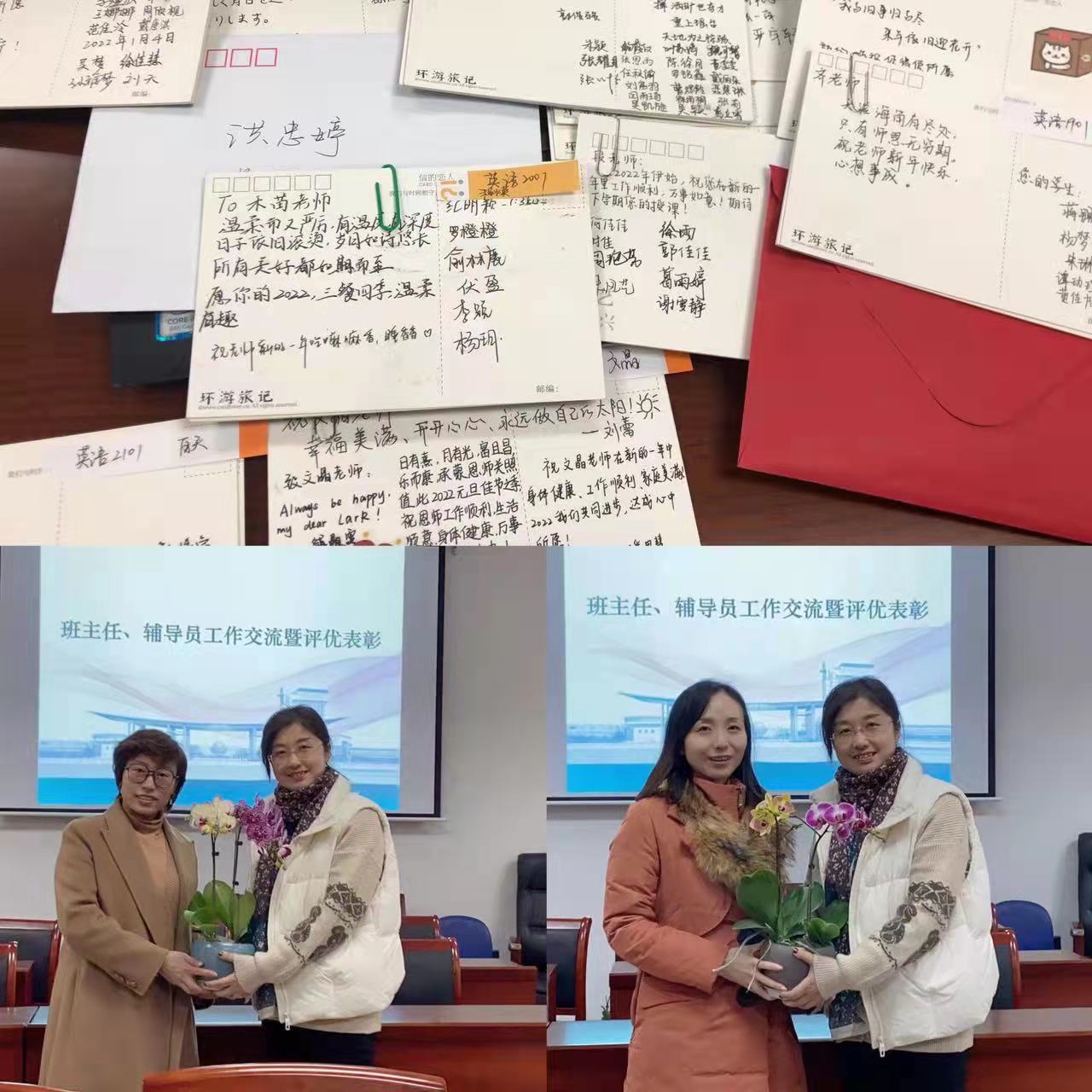 交流结束后,刘书记给各位班主任及辅导员送上了各班同学精心准备的贺卡及盆栽。院党委书记李骏肯定并感谢了各位班主任以及辅导员在2021年团学工作中所作出的努力和付出的艰辛,希望大家在2022年群策群力,共同努力奋进,再创学工佳绩。