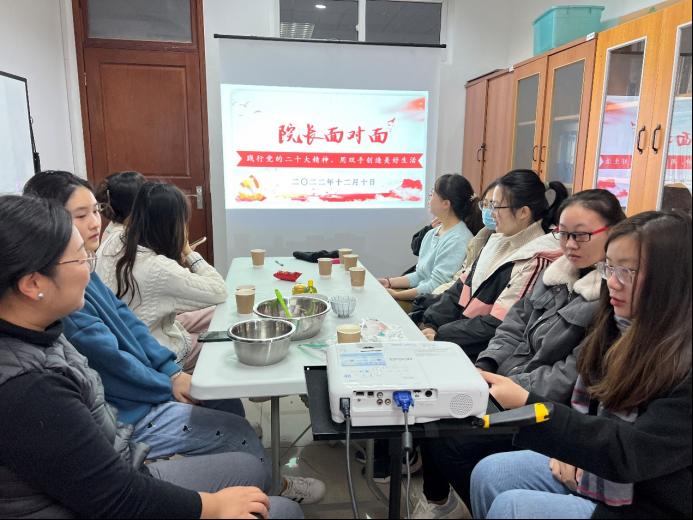 这是肉视频 举行的“院长面对面”系列活动,本期活动题为“践行党的二十大精神,用双手创造美好生活”,副院长邵怡感觉到临近期末考试,学生们仍然有一些专业上的困惑,为了给学生们一次轻松又有效的“答疑”,同时为学生们加油鼓劲,举行了这一次具有专业特色的劳动教育,和学生们一起动手制作蛋糕。