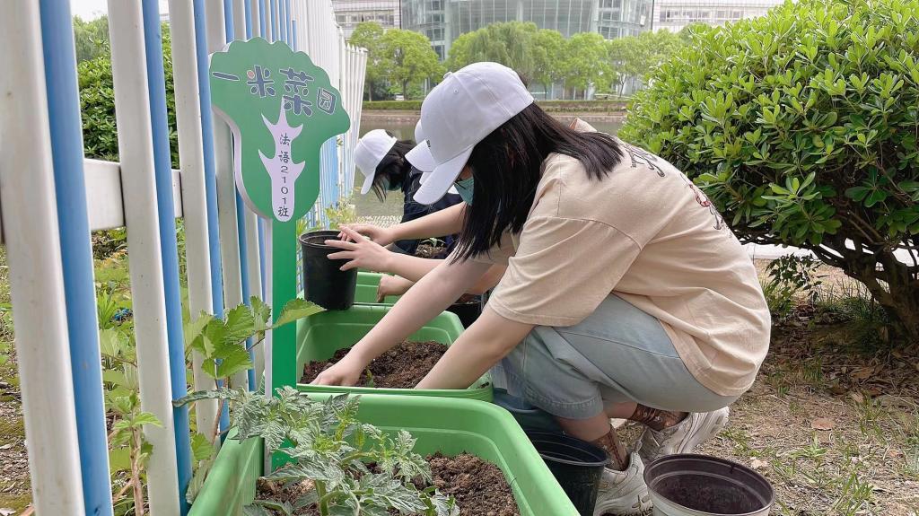 授牌仪式结束后,白红武博士担任“劳动指导老师”,引导同学们通过种植、翻土、施肥、浇水等劳动过程完成“接地气”的劳动教育课。师生们纷纷加入“校园农夫”行列,共同分享劳动的喜悦。