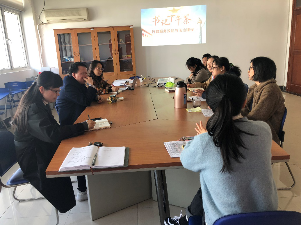 近日,肉视频 举办了第二十期“书记下午茶”,主题为提升行政服务效能与法治建设。外国语党政班子、全体行政人员参加了会议。